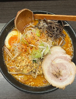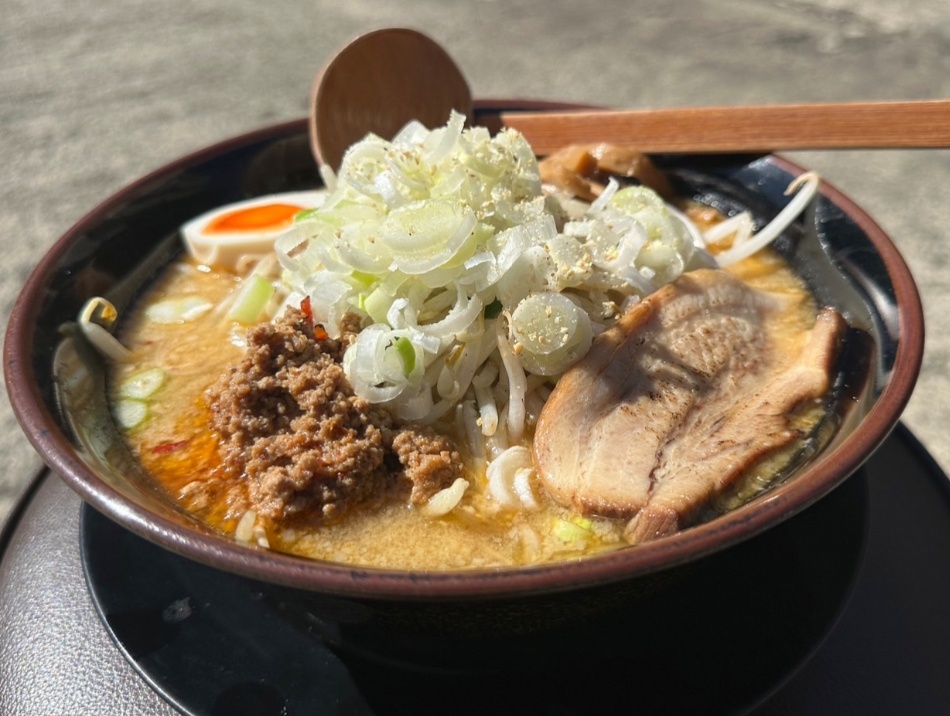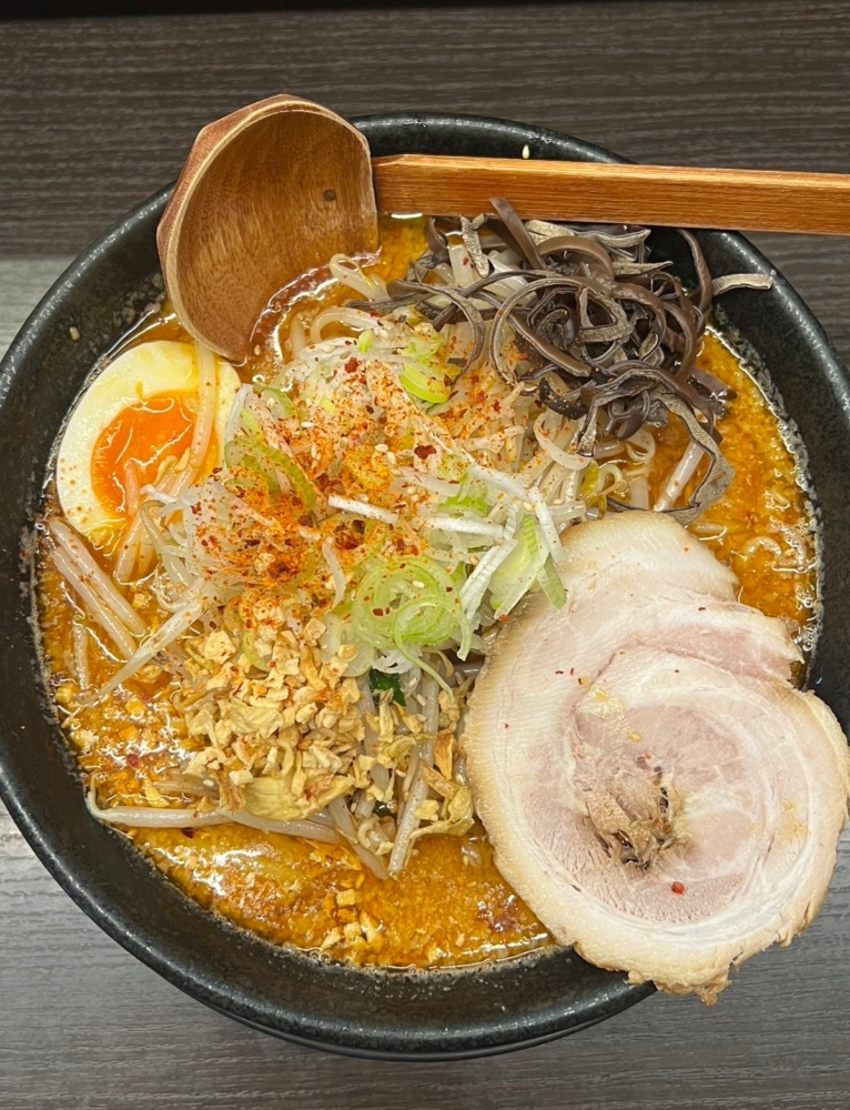 自家製味噌ラーメン北海道産小麦100%の麺を使用しています。